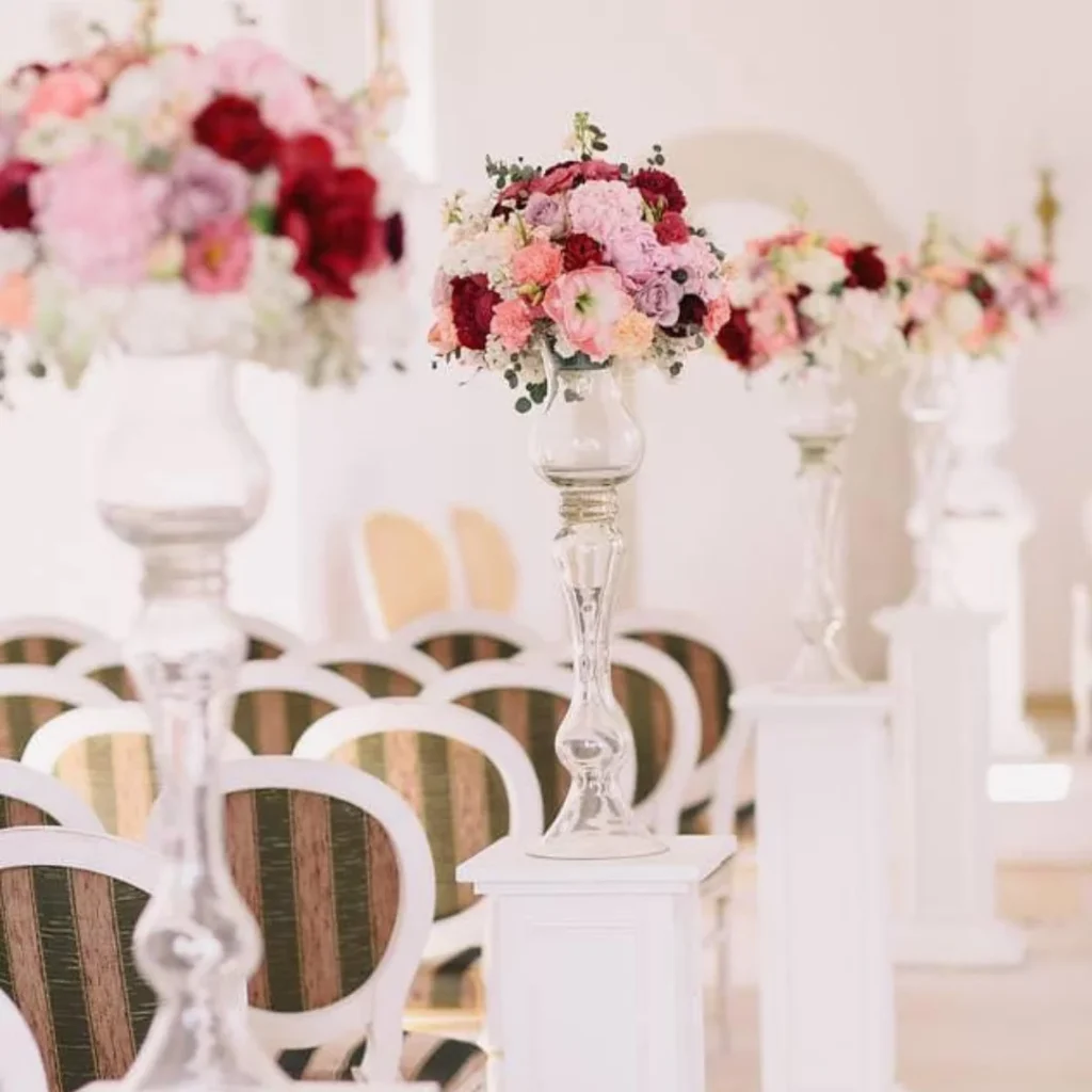 Unul dintre punctele principale din cadrul oricărui eveniment este prezidiul. Acesta este locul care atrage privirile tuturor invitaților și este un element important. Astfel, acesta iese în evidență prin aranjamentele florale care vin în completarea decorului și care vor fi diferite față de tot ceea ce regăsește pe mese invitaților, însă care vor fi din aceeași poveste.