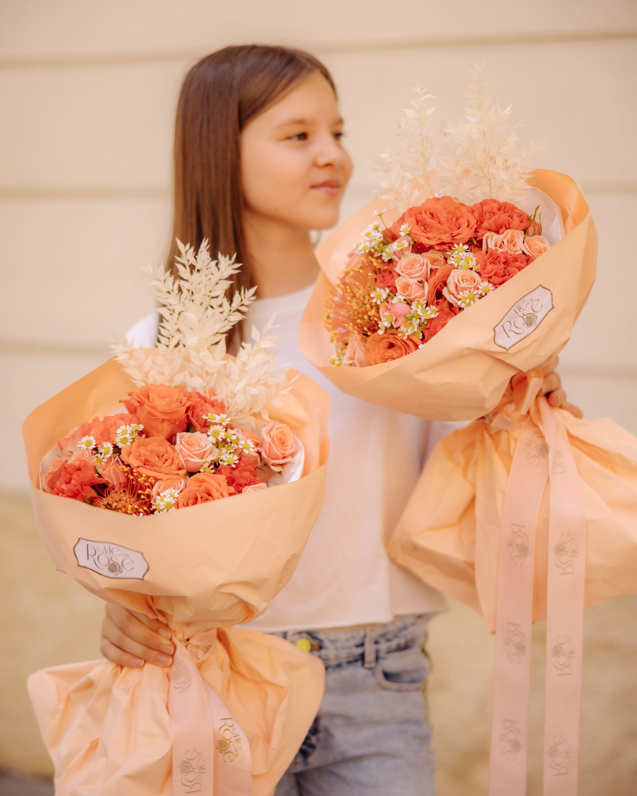 - Miniroze – Minirozele sunt flori care aduc un strop de delicatețe și grație în compoziție. Cu dimensiunile lor mai mici și culorile pastelate de roz sau crem, aceste flori sunt alegerea ideală pentru a aduce echilibru și gingășie. Minirozele sunt simboluri ale iubirii și afecțiunii blânde, fiind perfecte pentru a aduce o notă romantică și caldă în aranjament. Aceste flori delicate își fac loc printre elementele mai mari ale buchetului, aducând o textură subtilă și un sentiment de armonie naturală.